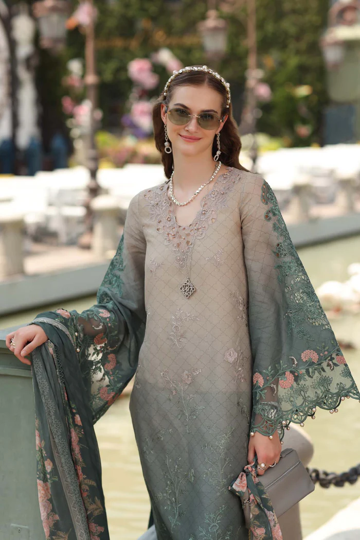 Paired with a digitally printed chiffon dupatta that flows with effortless softness, the look feels both fresh and timeless. Light, romantic, and exquisitely detailed, this Eid ensemble is made for moments touched by beauty, where every thread whispers elegance and every detail blooms with quiet luxury