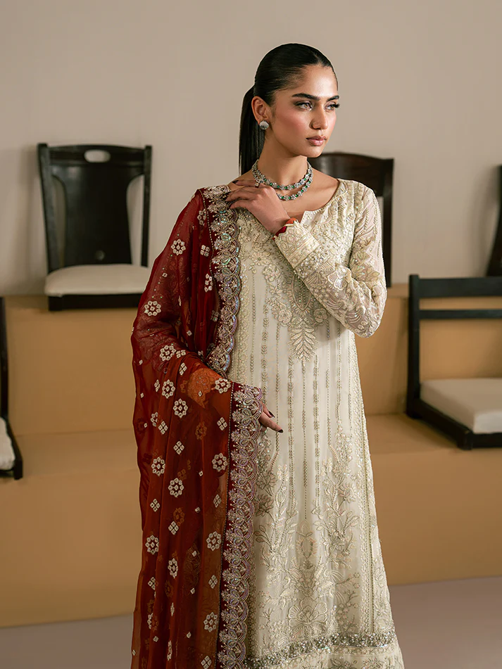• Embroidered and sequined organza border for dupatta