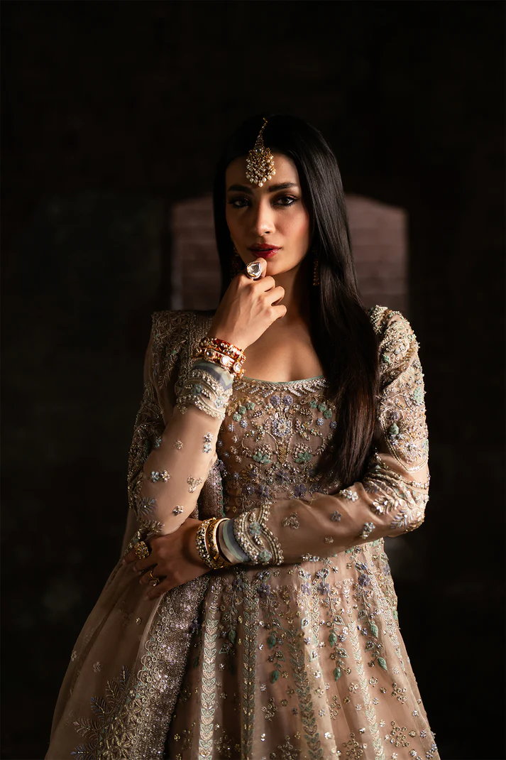Paired with a raw silk Lehenga, Mehmal balances structure with fluidity, reflecting thoughtful craftsmanship and subtle luxury. Every detail makes Mehmal an exquisite choice for festive gatherings, weddings, and elegant celebrations.