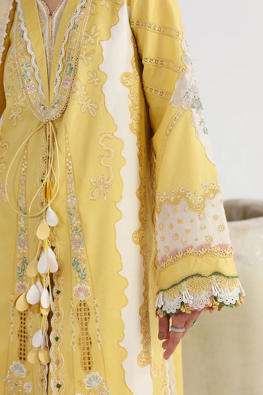 Embroidered sleeves border on (organza)